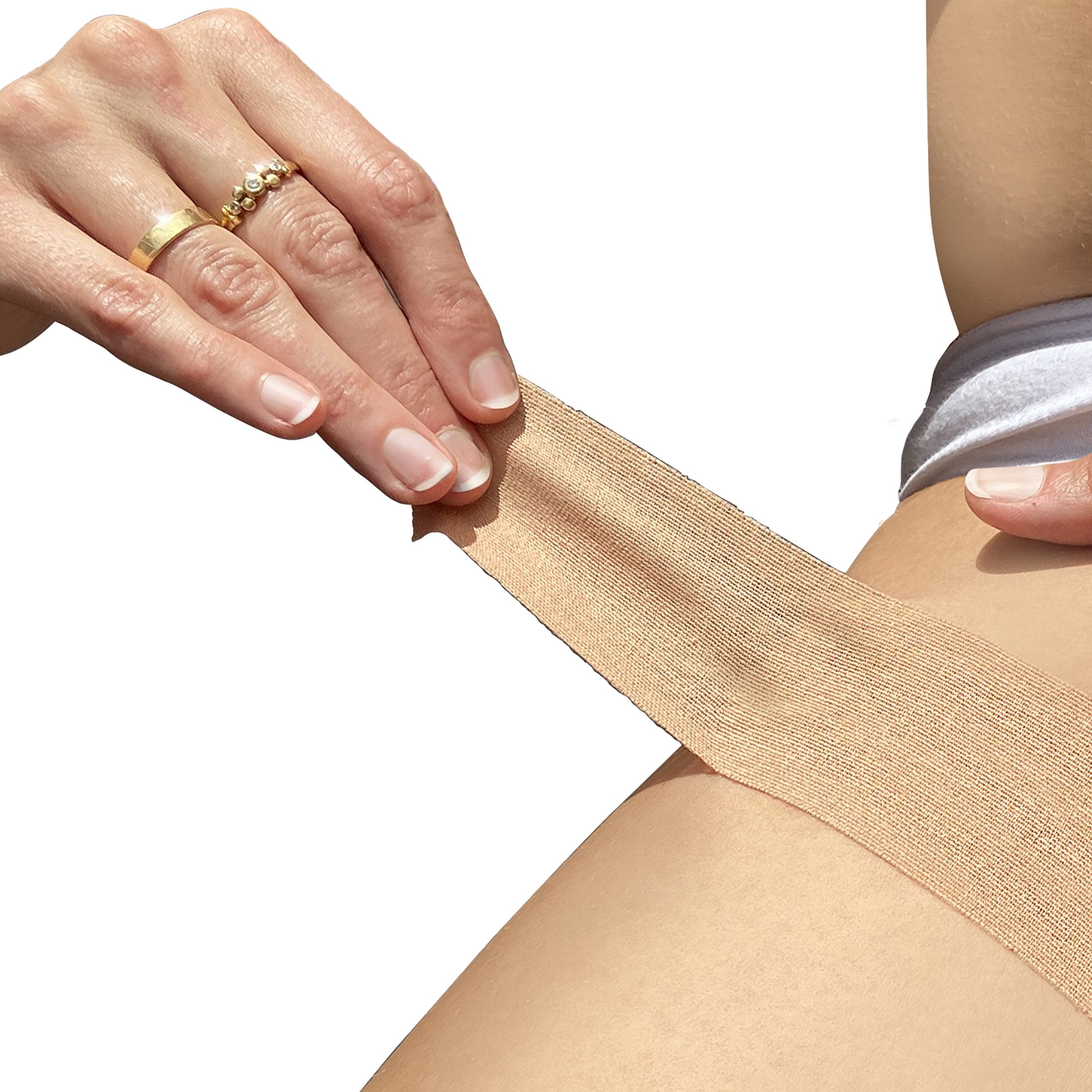 - ❌IMPORTANTE: No estirar las bandas antirozaduras muslos al ser colocadas. Son bandas espásticas pero se colocan sin estirar para que el elástico pueda hacer su función.
