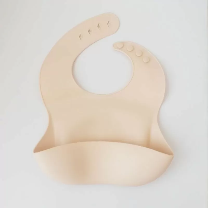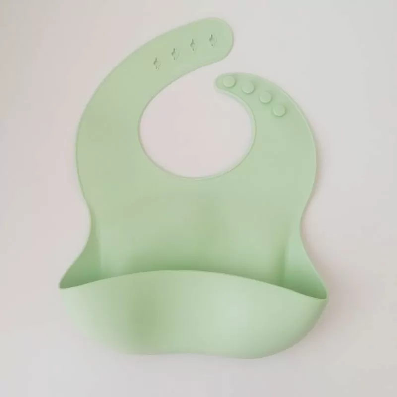 Babero de silicona flexible, impermeable, duradero y fácil de limpiar. Cuenta con un bolsillo que recoge los trozos de comida que se le puedan caer, ideal para cuando empiezan a comer solitos. Además, ¡no se mancha! Es resistente a las manchas y no absorbe agua.