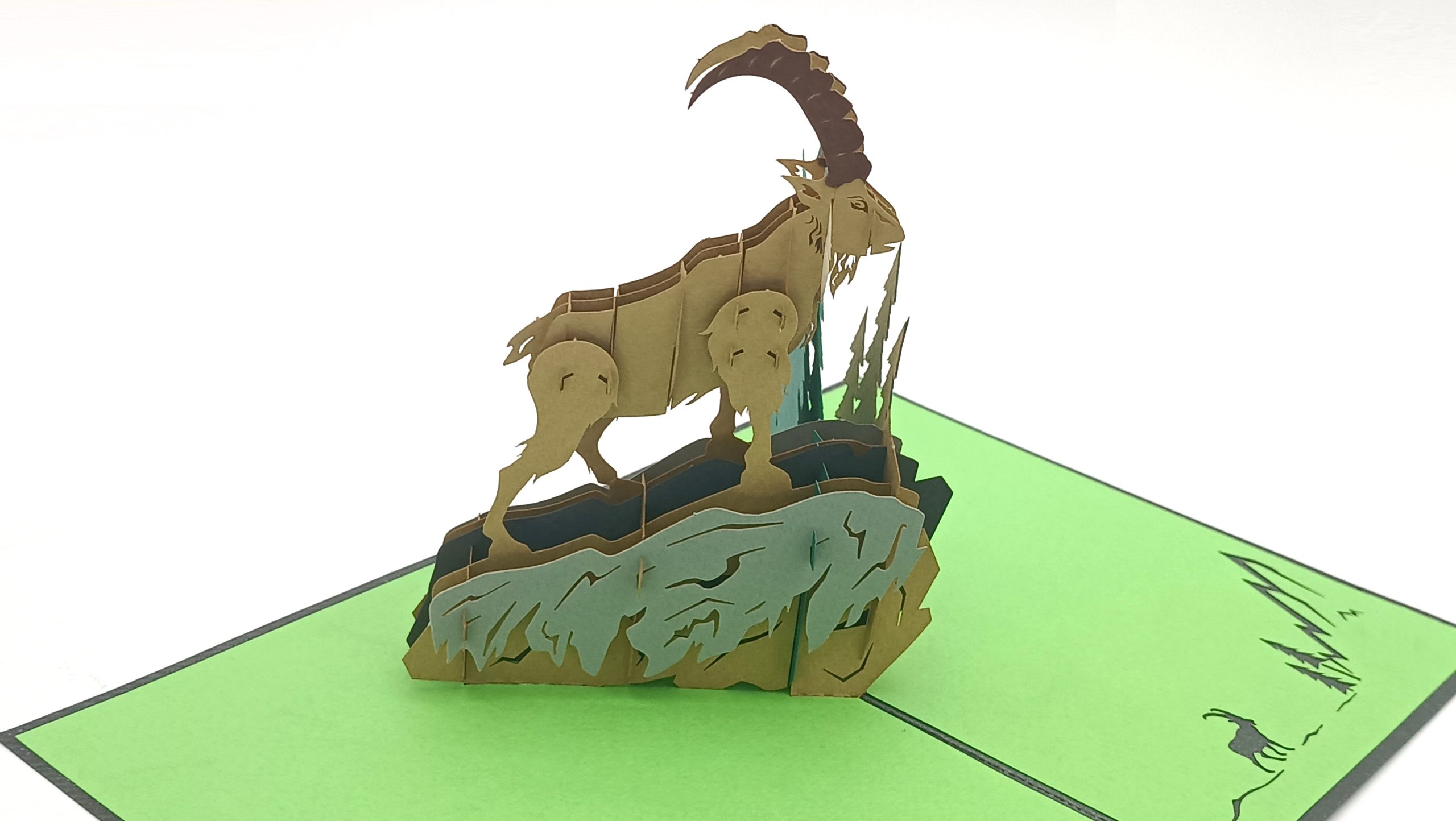 La técnica aplicada, resalta los detalles de la cabra montesa, sus astas y el entorno montañoso. La disposición artística crea una imagen que transmite la serenidad y la fuerza asociadas con la vida silvestre en las montañas.