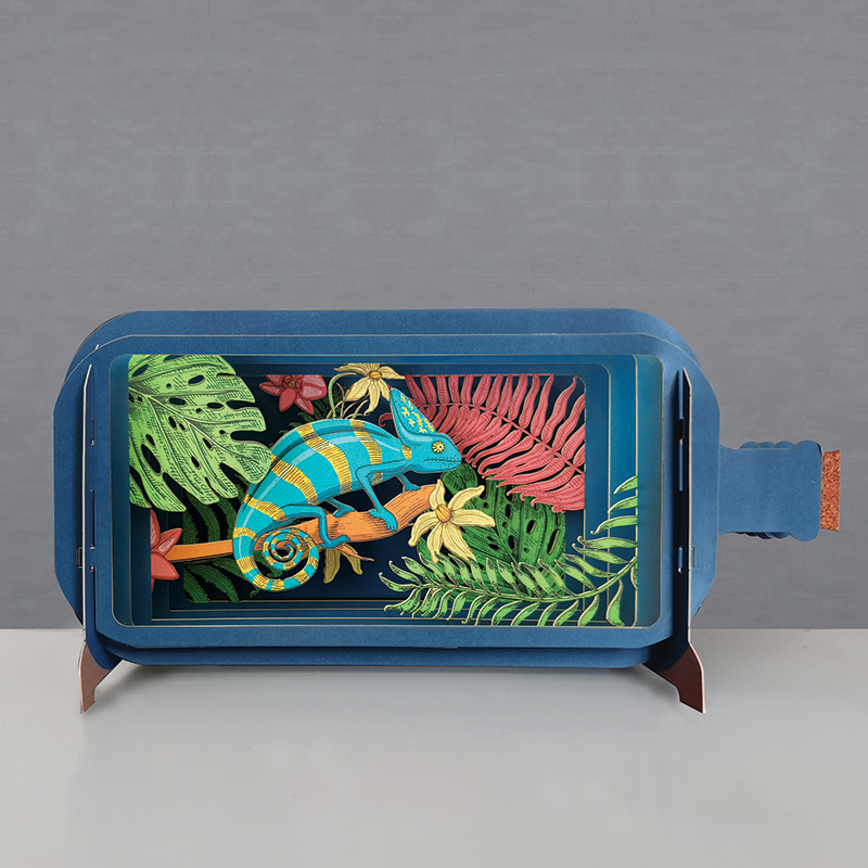 Adéntrate en la maravilla de la naturaleza con nuestra cautivadora tarjeta que celebra la diversidad y la curiosidad de un camaleón de colores vibrantes. Al abrir esta tarjeta, te sumergirás en un mundo de tonos suaves y detalles encantadores, donde la vida del camaleón se desenvuelve entre hojas y flores.
