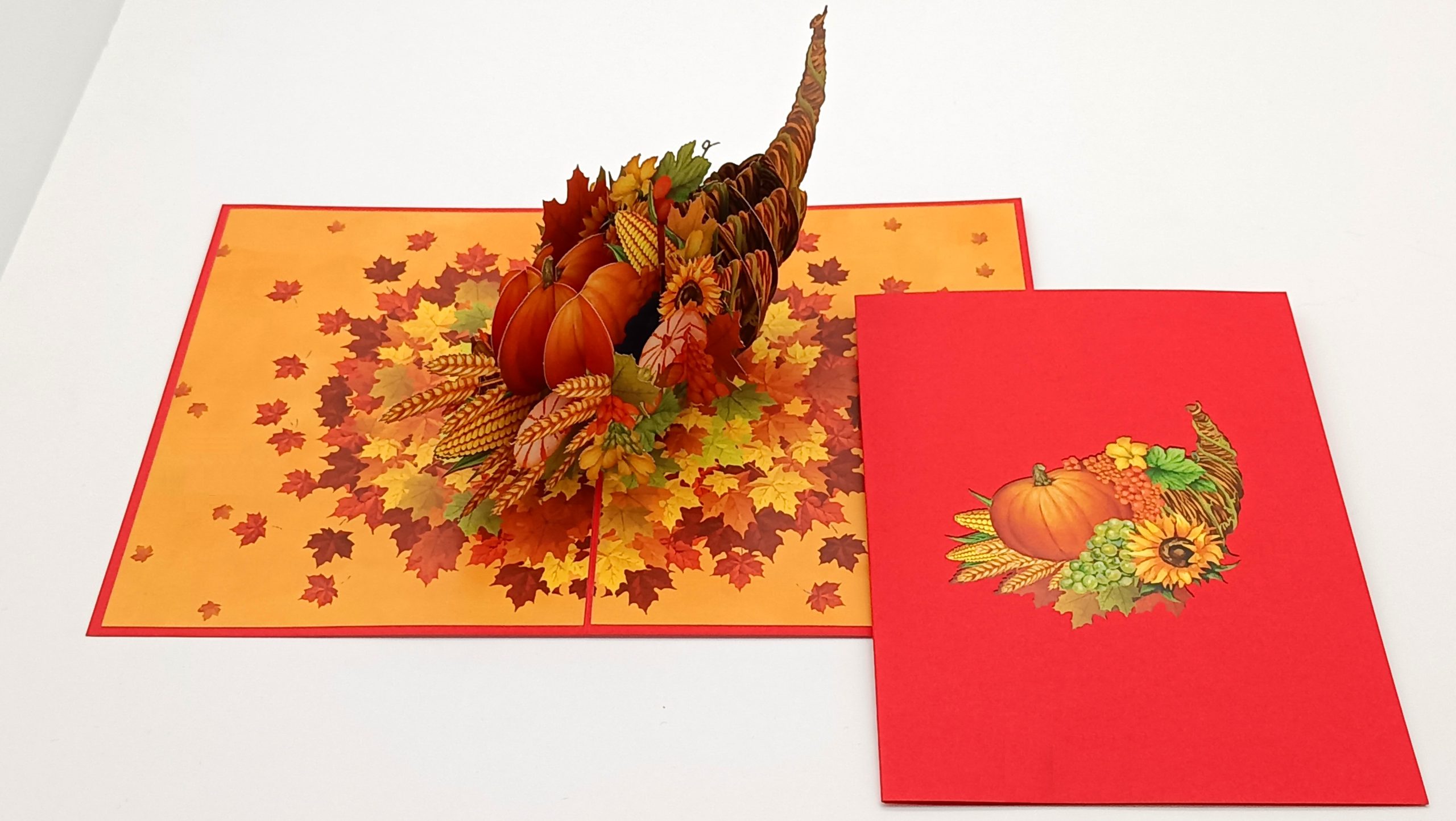 Convierte tus saludos en un mensaje de prosperidad con esta tarjeta pop up única. Adquiere la tuya ahora y comparte la magia del cuerno de la abundancia con aquellos que aprecias. Cada tarjeta es una celebración visual de la abundancia y la fortuna que puedes enviar a tus seres queridos.