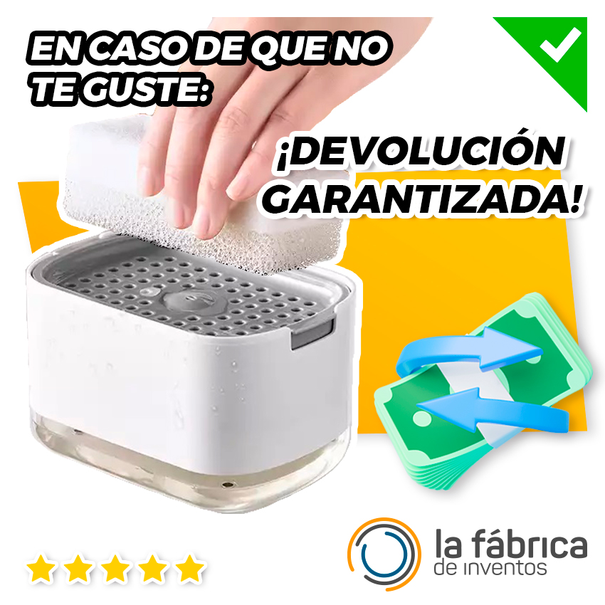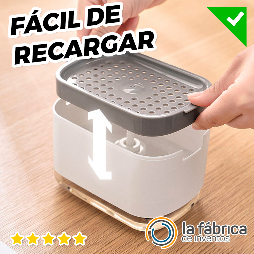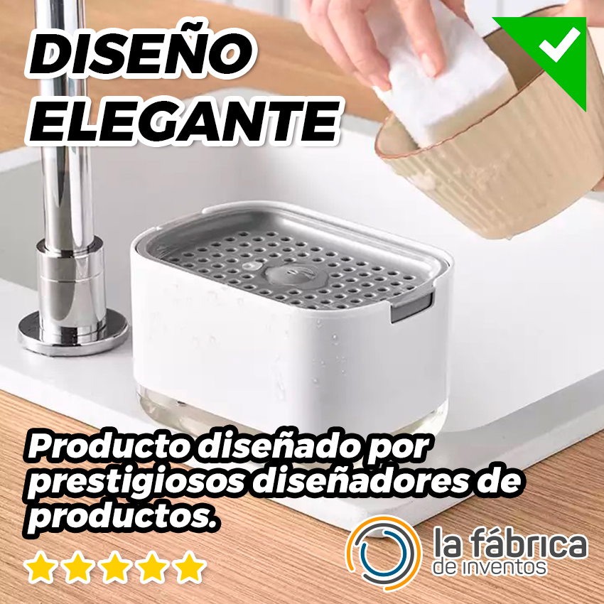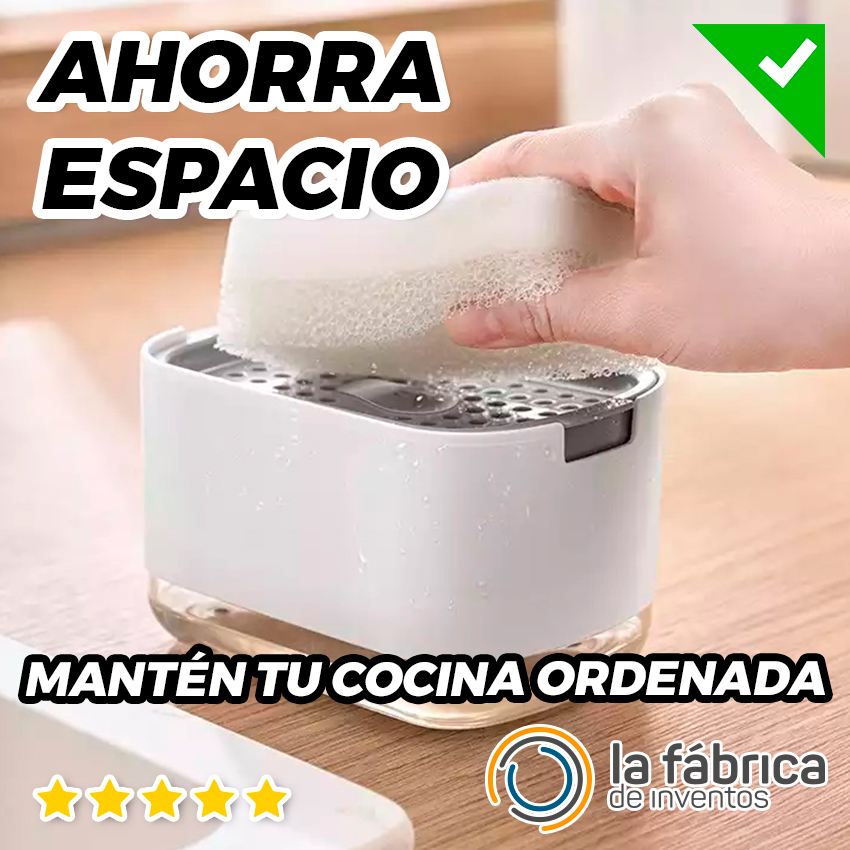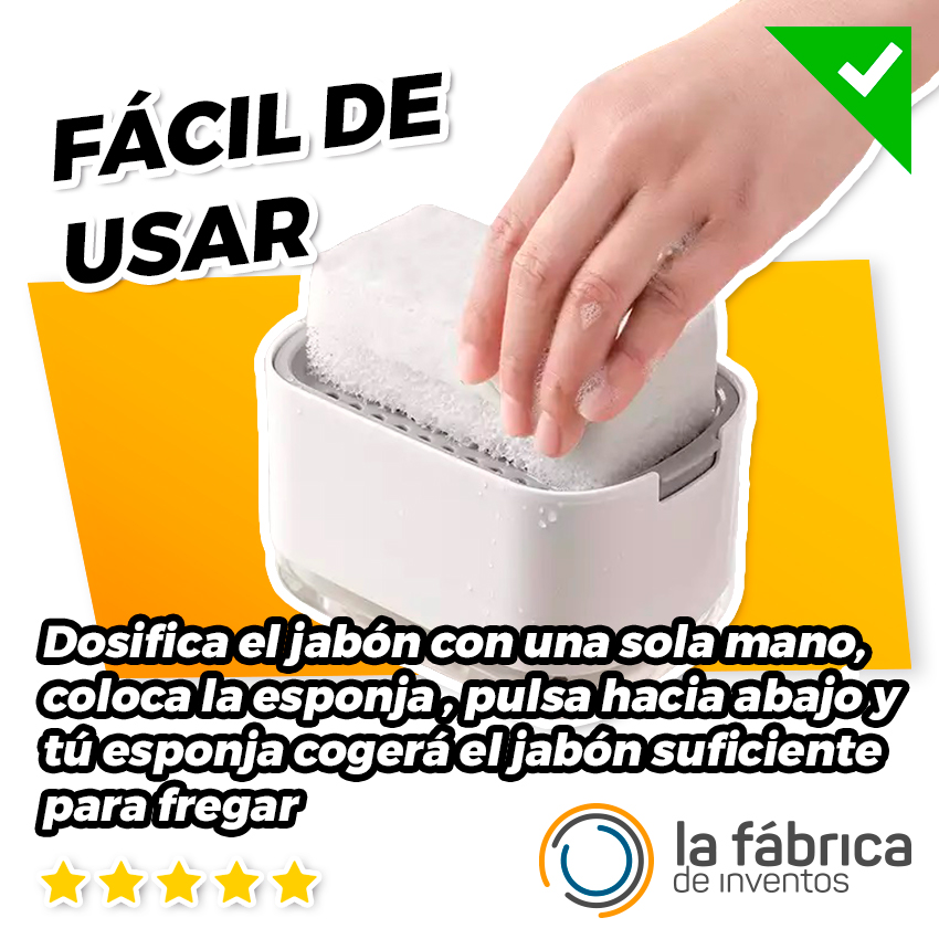 - 🧽 COMODIDAD: Dispensador jabon cocina que permite de forma sencilla poder poner lavavajillas en el estropajo, además de servir como organizador estropajo fregadero y poder guardar el estropajo y el jabón en un mismo utensilios de cocina