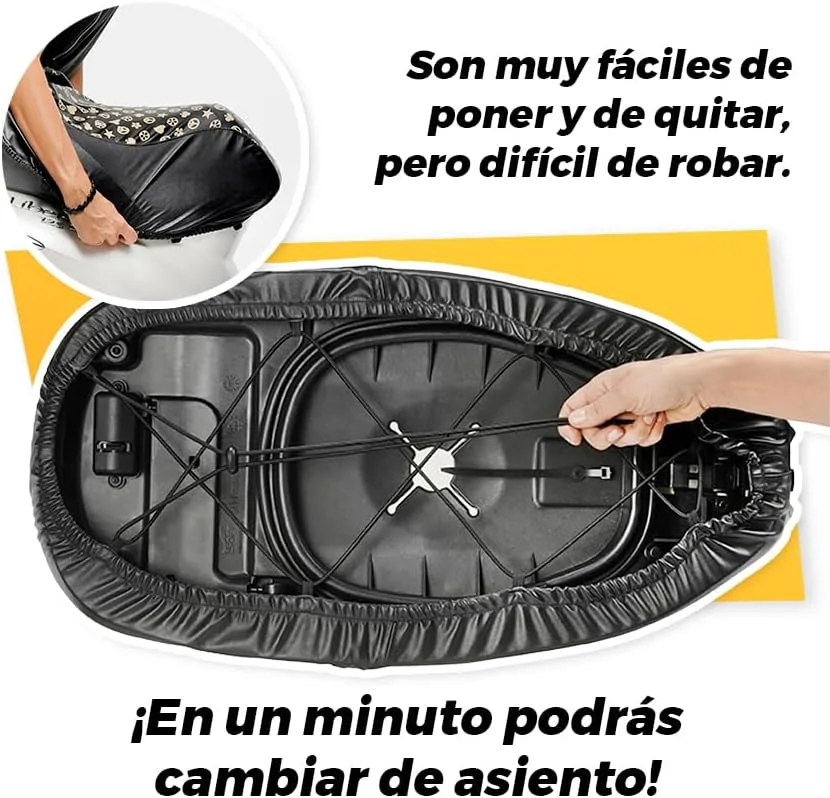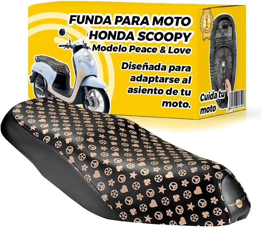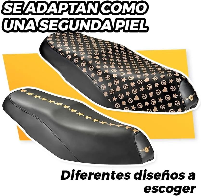 Funda asiento moto con diferentes diseños, para los modelos Honda SH 125 , SH 300, y Scoopy o para Piaggio Liberty o Vespa LX, ideal para poder mantener impoluto el asiento y además conseguir diseños originales, se cambia en un minuto, de forma muy sencilla, pero no se pueden robar.