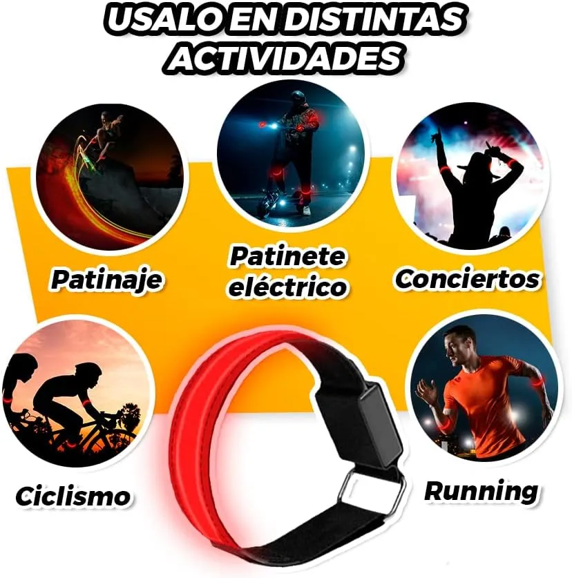 🚴♀️ VERSATILIDAD: El brazalete led son unos accesorios para bicicleta que se pueden poner en el brazo o en las piernas, permitiendo identificar mejor al ciclista