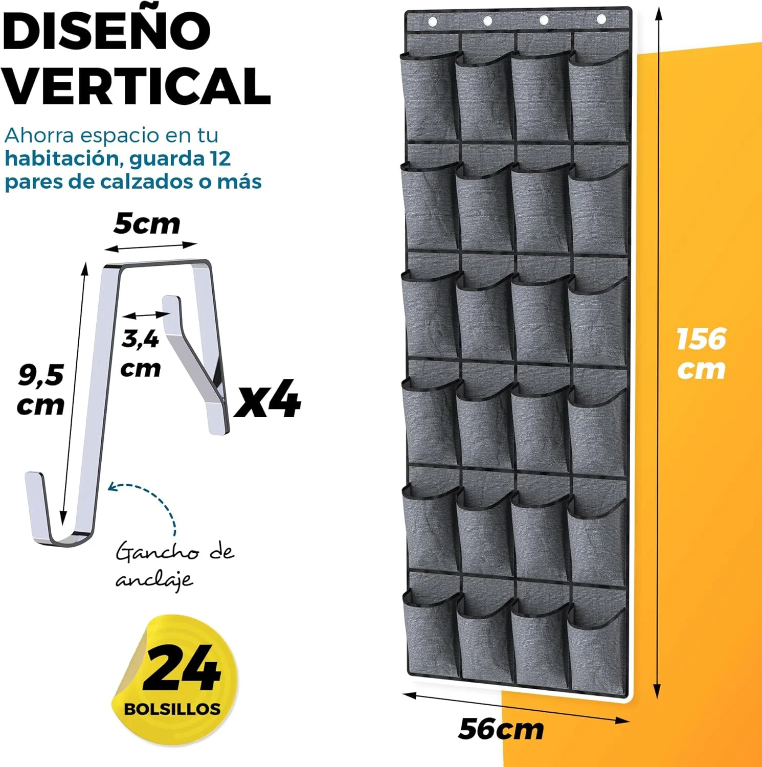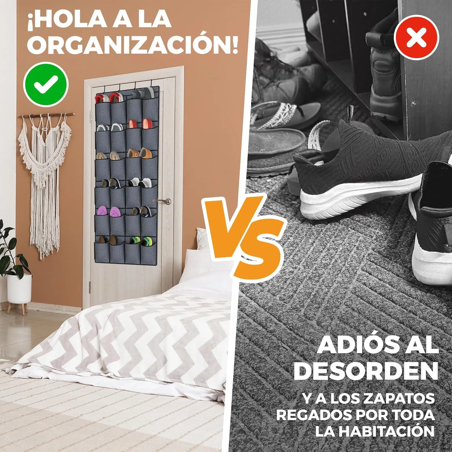 - ZAPATERO PUERTA COLGANTE DE GRAN CAPACIDAD: Este zapatero colgante cuenta con 24 bolsillos amplios ideales para organizar calzado, accesorios, productos de higiene y más.