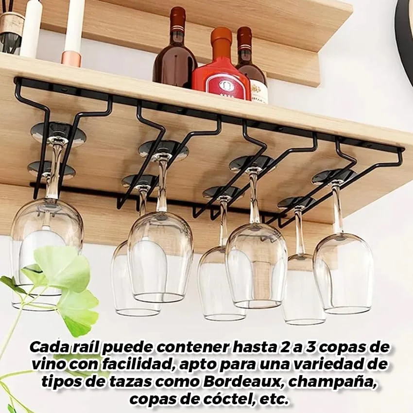 Cuelga copas ideal para poderlo colocar en cualquier cocina y conseguir tener la misma ordenada, se puede instalar debajo del gabinete y es perfecta para que en cada raíl puedan entra 2 o 3 copas, es un colgador de copas resistente con una instalación sencilla, para una larga vida del soporte copas colgante.