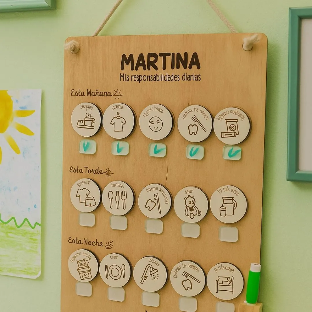 ✔ Personalizable: el tablero incluye el nombre del niño para hacerlo único.