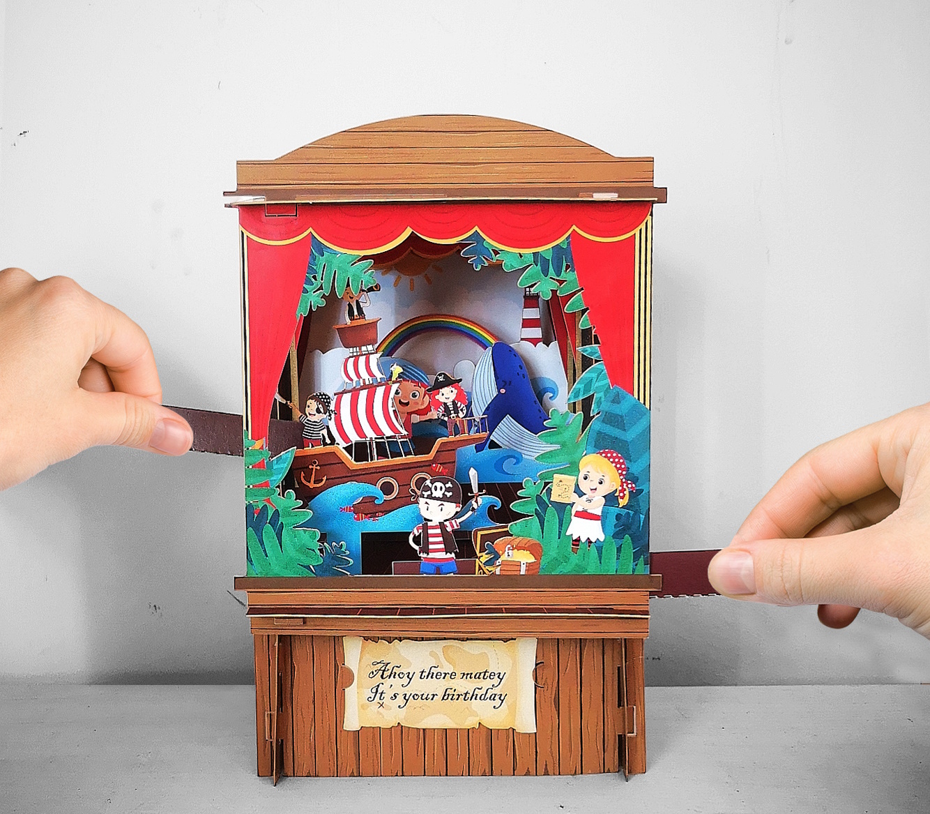 En la parte trasera de la tarjeta, encontrarás un espacio dedicado para escribir tus mensajes personalizados y felicitaciones. El teatrillo viene acompañado de un sobre, convirtiéndolo en un regalo completo y encantador para los amantes de la creatividad y la diversión teatral. Disponible ahora en nuestra página web, esta tarjeta teatral es perfecta para regalar momentos mágicos a los niños en cualquier ocasión. ¡Haz que su imaginación navegue hacia nuevas aventuras!